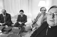 Los obispos Jorge Casaretto y Juan Carlos Maccarone, el embajador del PNUD Carmelo Angulo, el vicejefe de Gabinete Juan Pablo Cafiero y el diputado José María Díaz Bancalari presentaron su informe el viernes a Eduardo Duhalde. Todos ellos saben que el tiempo urge y que los diálogos tienen que conducir hacia alternativas concretas. A partir de hoy se intensificarán las reuniones, continuarán funcionando las mesas de trabajo y se iniciará una ronda de contactos con embajadores y representantes de organismos internacionales. En la agenda de esta semana aparecen los embajadores de la Comunidad Europea, el presidente del Banco Interamericano de Desarrollo (BID), Enrique Iglesias, y los representantes locales del FMI y el Banco Mundial que la semana anterior faltaron a la cita sin aviso.