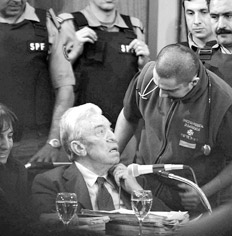 Antes de que Cattáneo terminara su declaración, intervino Bussi. “En el Comando del Ejército no había ningún antecedente de los políticos. No recuerdo haber escuchado jamás el nombre de Vargas Aignasse en ese ámbito. Yo no firmé esa lista, se debe haber realizado en ámbitos superiores”, dijo en alusión a su jefe inmediato, o sea, Menéndez, que no se encontraba en la sala. Mientras hablaba el dictador tucumano, se escuchaba por el micrófono el sonido del aire que salía por el tubo de oxígeno que entraba en su nariz y que según los médicos no necesita.