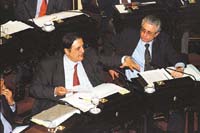 En la misma línea habló el riojano Eduardo Menem. Además de reconocer la condición de regímenes especiales, el senador hizo un repaso al contexto político en el que se daba la discusión. Luego de criticar la presión ejercida por los medios de prensa, aprovechó la oportunidad e hizo referencia al debate por el juicio político a la Corte Suprema. El Gobierno se la había dejado picando y el riojano aprovechó la oportunidad. Criticó los arrestos de enjuiciamiento que a diferencia de este momento habían embriagado a las huestes de Eduardo Duhalde en el comienzo de su gestión. “Se han metido en una sola bolsa a jueces, diplomáticos, políticos y obispos. Hasta a Dios lo han metido en la bolsa”, ironizó Menem.