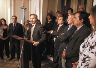 Las negociaciones, que venían desde hace tiempo, se prolongaron hasta poco antes de la rueda de prensa. Villaverde cuestionó la decisión inconsulta de Solá de anunciar la escisión ayer, pero finalmente se incorporó al bloque. El duhaldista Jorge Sarghini, a quien contaban adentro, decidió mantener su propio monobloque. Sin embargo, todo el peronismo anti K decidió acompañar a Solá para darle otro marco a la presentación y mostrarse como factor de poder legislativo. “Somos veintitrés, apenas uno menos que el bloque de la UCR”, se ufanaban. A esa hora ya habían sufrido la primera deserción: la santiagueña Laura Velarde –la primera que rompió con el bloque K después de la 125– prefirió seguir trabajando cerca de la Coalición Cívica.