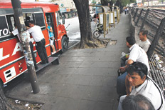 “Cuando sale una agüita por atrás del colectivo, es que alguien está meando”, precisaron los choferes que, al sol bajo los 30 grados de la tarde de ayer, esperaban el momento de empezar a trabajar. Página/12 dialogó con cuatro de ellos, que dijeron: “Cuando un chofer lleva diez minutos de atraso, va ‘en el aire’” (a alta velocidad); el atraso se produce “porque no hay servicio” (no hay suficientes coches) y, entonces, “tenés que hacer el trabajo del de adelante” (recoger los pasajeros que esperan por insuficiente frecuencia del servicio).