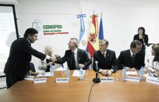 “La ausencia de las políticas sociales no es la solución, el sector financiero debe ser un servidor de la economía real y no su dueño, consideró el ex ministro español durante la charla ofrecida en la sede del Centro de Estudios Municipales y Provinciales (Cemupro), que preside Binner, en Esmeralda al 200.
