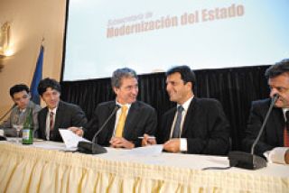 De visita ambos en Mar del Plata, el jefe de Gabinete, Sergio Massa, y el secretario general de la gobernación bonaerense, José “Pepe” Scioli, firmaron un convenio de asistencia técnica para fortalecer los programas de modernización del Estado. Fue el viernes a la noche, en un acto en el Hotel Provincial, donde los dos posaron para los fotógrafos. Junto a Massa estuvo el secretario de Gestión Pública, Juan Manuel Abal Medina; con Scioli estuvo el subsecretario de Modernización del Estado, Diego Gorgal. Tal como informó Página/12, Scioli será uno de los candidatos que acompañarán a Néstor Kirchner en la lista de diputados del oficialismo.
