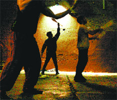 El galpón de Trivenchi, en Caseros al 1700, es una escuela de circo donde todas las semanas unas 500 personas, la mayoría vecinos de Constitución y Barracas, pasan por talleres como éste (algunos menos impresionantes, como yoga o estiramiento, otros de malabares).