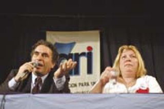 Una vez concluido el discurso, Jozami presentó a Carrió. A diferencia del último acto del ARI porteño, esta vez la chaqueña no se preocupó por destacar la decisión de no realizar “alianzas partidocráticas” en la Capital, lo que en aquel momento se leyó como la negativa a un acuerdo con Ibarra o con los socialistas. Tampoco mencionó elogiosamente a Jozami, como en aquella oportunidad.