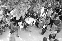 Sin mucha parafernalia y sin el tradicional cotillón de campaña, Carrió hizo su primera estación en la localidad de Villa Luzuriaga, un barrio de casitas bajas pertenecientes a una clase media en caída libre. En el jardín de una casa, donde los vecinos acomodaron las sillas como si estuvieran en un aula escolar para esperar a la candidata del ARI. A las 15.30, cuando el sol se desplomaba con ferocidad, llegó Carrió.