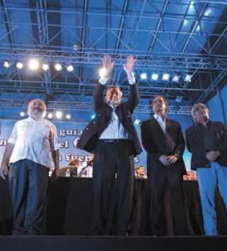 Los tres destacaron los logros del Gobierno. El titular de la CGT calificó de “perversos” a los senadores opositores. Pérsico aseguró que Kirchner va a ser candidato a presidente en 2011.