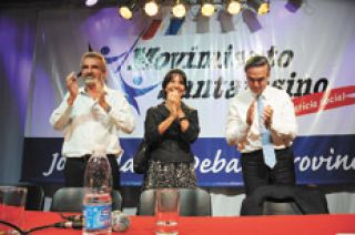 En el panel de cierre acompañaron a Rossi el titular del bloque de senadores del Frente para la Victoria, Miguel Pichetto, y la presidenta del Banco Central, Mercedes Marcó del Pont, muy aplaudida cuando subió al escenario. Pichetto indicó estar feliz de “acompañar a un hombre valiente como Agustín, de quien estoy convencida que está destinado a cosas mayores en Santa Fe” y desató la rechifla de los presentes con sus menciones a Cobos. “No se puede ser oficialista y opositor”, apuntó el senador y cargó también contra la oposición al señalar que “no se les cae una idea”. A los radicales en particular les pidió que “vuelvan a construir propuestas” y dijo esperar “que retomen la senda de construcción positiva, que no sean corridos por los sectores del peronismo disidente y por el lado de Carrió, en donde solamente impera la idea de la confrontación por la confrontación misma. Espero que esto cambie porque el país necesita que se construya un debate democrático con ideas y con propuestas.”