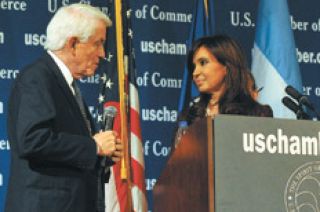 A la Presidenta la presentó el titular y CEO de la Cámara de Comercio, Tomás Donohue, con elogios a la marcha de la economía argentina. “Bueno, con estas palabras una se siente más comprometida”, arrancó Cristina Kirchner, que hizo un repaso de las relaciones comerciales entre Argentina y Estados Unidos, que definió históricas. En más de una oportunidad en el día recordó que Ford Motors hace 98 años que está en el país. Según dijo, fue el segundo país del mundo en el que Ford decidió invertir. En lo que ya es un clásico, mencionó la recuperación económica argentina de los últimos años luego de la crisis y “del default de deuda soberana más importante del que se tenga memoria”. Habló de los superávit gemelos, del crecimiento sostenido del PBI –el 64 por ciento desde el 2003, dijo– y de la relativa tranquilidad con la que Argentina superó el 2009, el año de la crisis mundial. “Hemos sostenido un comportamiento en la economía muy importante y no según datos nuestros sino de Naciones Unidas, luego de China fuimos el país con mayor actuación del Estado frente a la crisis global”, se congratuló.