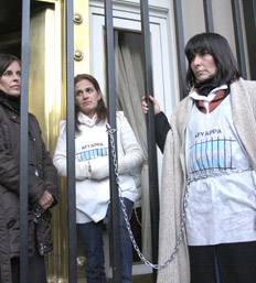 Entre quienes se encadenaron esta semana en el Ministerio de Defensa estuvieron las esposas y hermanas de Ernesto Barreiro, Horacio Losito, Rafael Barreiro, Aldo Martínez Segon y Alfredo Astiz. Podrían repetir la escena el martes, en el juicio a Videla y Menéndez.