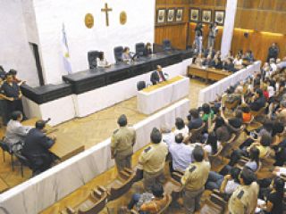 “¿Que cómo estamos? ¡Cómo vamos a estar! De festejos”, decía anoche, exultante después de larguísimos años, Cristina Torres, ex presa política y actual delegada provincial de la Secretaría de Derechos Humanos. “Esta noche duermen en la cárcel de Colonia Pinto los tres. Para nosotros se hizo justicia y ésta es la culminación de un proceso de mucha, mucha lucha, mucho trabajo, de mucha dedicación de familiares, de los organismos de derechos humanos, de los movimientos sociales y partidos políticos. Estamos acá en la plaza festejando la posibilidad de arribar a una condena, en un lugar donde el ex presidente supo interpretar el anhelo de justicia. Con la caída de las leyes de la impunidad logramos poner las querellas y hoy hay justicia.” Una justicia que ayer atrajo a la plaza por primera vez a columnas de jóvenes de las dos universidades santiagueñas, la Católica y la Nacional, que llegaron con los docentes.