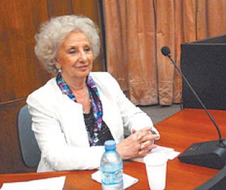 Su hija Laura, dijo Estela ayer, era “la muestra de que las mamás luego de dar a luz (en los centros clandestinos) eran asesinadas”. “Sobre su tumba prometí que seguiría luchando por su justicia y por la de sus 30 mil compañeros”, dijo. Destacó a las Abuelas de Plaza de Mayo como una organización única en su especie, en el mundo, y que cuenta entre sus grandes logros con la creación del Banco Nacional de Datos Genéticos, clave en la búsqueda y el hallazgo de 103 chicos (hoy jóvenes) apropiados. “No queremos revancha, solamente justicia para que se escriba la historia con toda la verdad (...) La justicia será la única forma de que esta democracia sea permanente y que no se repitan estos crímenes.”