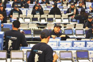 Página/12 recorrió ayer el centro operativo de Conectar Igualdad, ubicado en una antigua planta embotelladora de Seven Up en Pablo Podestá, en el noroeste del conurbano bonaerense. Ahora funciona allí una sede del correo oficial. Cien operarios están abocados exclusivamente a preparar las máquinas que tienen como destinatarios a estudiantes, docentes, institutos de formación y escuelas de educación especial del sector público. El trabajo es febril. Consiste básicamente en identificar cada computadora con un alumno y dotarla de los elementos de seguridad que las bloquean en caso de robo. Las netbooks también dejan de funcionar si el estudiante no se conecta periódicamente con el servidor del colegio.