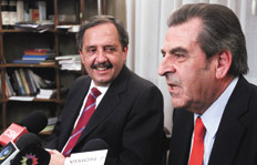 “Frei es un hombre que ha demostrado que el hijo de un presidente puede ser presidente. Yo tengo la tarea de demostrar lo mismo en la Argentina.” Con esas palabras, el candidato a la presidencia por Unión para el Desarrollo Social (Udeso), Ricardo Alfonsín, se refirió al ex presidente de Chile Eduardo Frei, con quien se reunió ayer para analizar la relación bilateral, la situación regional y acordar una visita a ese país para reunirse con los líderes de la Concertación. Frei evitó pronunciarse acerca de las elecciones de octubre, argumentando que no es su papel proclamar ni rechazar candidaturas, y elogió las primarias del próximo 14 de agosto: “Me produce una sana envidia ver que Argentina y Uruguay hacen primarias”, afirmó.