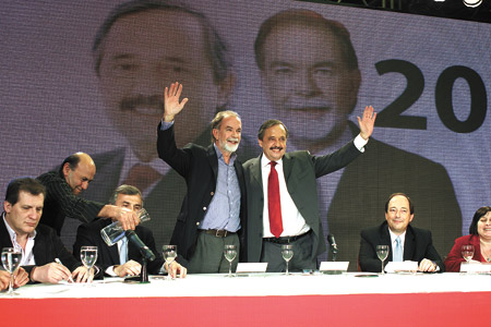 Distintas agrupaciones juveniles de la UCR habían irrumpido en el salón del Hotel NH, al grito de que les abrieran la puerta. Una vez adentro, cantaron al unísono a favor de Alfonsín, todos vestidos con remeras que decían “abrile la puerta al futuro”. “Les aseguro una cosa, ni Javier, ni yo ni el Udeso ni la UCR se atrevería jamás a dar un solo paso en contra de la construcción de esa sociedad más justa por la que venimos peleando”, aseguró el candidato, tratando de no perder la impronta progresista que tenía antes de romper con los socialistas para asociarse con De Narváez.