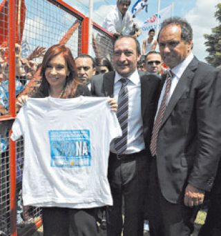 La comitiva que acompañó a la Presidenta estuvo compuesta por el gobernador bonaerense Daniel Scioli; la ministra de Industria, Débora Giorgi; y el secretario general de la Presidencia, Oscar Parrilli. Además se encontraba el candidato del Frente para la Victoria, Luis Vivona, que intentará desbancar al duhaldista Jesús Cariglino de la intendencia de Malvinas Argentinas. CFK levantó a su candidato al señalar que “es de bien nacido ser agradecido, y por eso me acuerdo que en 2005, cuando vine como candidata a senadora, Vivona y sus compañeros me acompañaron a todas partes”. Y se preguntó: “¿Qué hubiera sido si nosotros no hubiéramos podido ganar en 2005? ¿Hubiéramos podido seguir adelante con este proyecto que transformó la Argentina?”. En 2005, el kirchnerismo se enfrentó por primera vez en las urnas con las viejas estructuras partidarias que aún respondían al duhaldismo, y Fernández de Kirchner les pasó por encima.