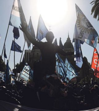 Las columnas de jóvenes y gente suelta se fue acercando de a poco a la Plaza de Mayo. Primero fueron los mineros con la estatua de Kirchner –a esa altura llena de ramos de florales y ofrendas de todo tipo– que recorrieron la Avenida de Mayo desde el Congreso hasta el centro de la Plaza de Mayo. Allí se encontraron con la presidenta de la Asociación Madres de Plaza de Mayo, Hebe de Bonafini, que los estaba esperando después de realizar la tradicional marcha de los jueves, apenas rozaban las cuatro de la tarde. Para esa hora las columnas de militantes del Movimiento Evita, el Frente Transversal, Nacional y Popular, la agrupación Kolina y la Corriente Peronista Nacional flameaban con el fresco viento de la tarde.