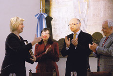 “Quería que mi último acto como canciller fuera uno por los derechos humanos y en homenaje a Emilio Mignone. Hoy la Presidenta tuvo la deferencia de convertir este acto en el primero de una nueva etapa”, afirmó Héctor Timerman, quien aprovechó la ceremonia de distinción a la directora del Consejo Internacional de Rehabilitación a Víctimas de la Tortura (IRCT), Brita Sydhoff, para referirse a su reasignación al mando del Ministerio de Relaciones Exteriores nacional. Momentos antes de la entrega de una placa conmemoratoria del Premio Internacional de Derechos Humanos Emilio Mignone –en referencia al creador del Centro de Estudios Legales y Sociales (CELS)– a Sydhoff, el canciller recordó a su padre, Jacobo Timerman, víctima de la tortura: “El trabajo del instituto no me es ajeno. Vi en mi propio padre cómo la tortura destruye hasta a las personas más fuertes”. Del evento, realizado en el Palacio San Martín, también participaron el director del CELS, Horacio Verbitsky, y la hija de Mignone, Isabel Mignone. “Saludamos a Brita como una compañera más en esta lucha”, apuntó Verbitsky, sobre la secretaria general del organismo que cuenta con 146 centros de rehabilitación a víctimas de la tortura en el mundo.
