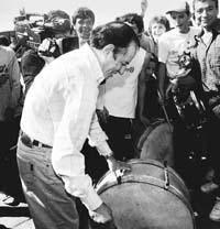 Con las encuestas ubicándolo casi 40 puntos por debajo en el ballottage, Carlos Menem continuó la campaña en dos frentes: recorrer los distritos del Conurbano, donde los números le son especialmente desfavorables y atacar a su rival Néstor Kirchner, a quien anoche calificó como un candidato “montonero”. “Kirchner perteneció al movimiento montonero en el sur de la Argentina y su representante, Jorge Obeid, también lo fue”, dijo el ex mandatario en declaraciones televisivas. Además reiteró que no va “a tolerar la violencia de los piqueteros”. “No es posible que sigan ocurriendo estas situaciones en las que los piqueteros entran a la Casa de Gobierno y hay que darles un cheque para sacarlos”, señaló.