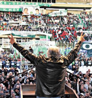 Con la nueva mesa de conducción escrutando de fondo y aplaudiendo pasajes de su discurso, el camionero destacó que abordaría desde la óptica de los trabajadores el tema de la inseguridad porque “ya ha atemorizado a la sociedad que no encuentra la solución que el Estado le debe dar y no le da”. El sindicalista continuó con su lista de reclamos a la Presidenta, a la que desafió a que “empiece a dar respuesta a los reclamos y si no empecemos a pensar en términos políticos. Si no hay respuesta a quienes han contribuido al triunfo de la Presidenta, tendremos que repensar el futuro voto del año que viene”. Antes había arengado su “adhesión a los trabajadores estatales bonaerenses que legítimamente pelean por su salario” y puntualizó: “Sabemos bien por qué no pueden cobrar. Se la agarran con el gobernador (Daniel Scioli) y es el gobierno nacional el que no envía el dinero”, lavando de culpas a Scioli, de buena relación con Moyano.