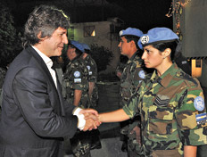 Ayer al mediodía, el vicepresidente visitó la sede del batallón de infantería argentino, que forma parte de la misión de estabilización de las Naciones Unidas (Minustah), apostado en la Bahía de Gonaives, a unos cien kilómetros de la capital haitiana. Allí, almorzó junto a los poco más de 550 hombres y mujeres del batallón 16 de Cascos Azules, que integran la fuerza de paz, y a quienes les dijo que “son las tropas de la paz que llevan ilusión a los millones de haitianos que viven en condiciones muy difíciles”. Y agregó que “la paz es una de las claves en el mundo que se viene”, tras lo cual recordó que a partir del ingreso de nuestro país como miembro no permanente del Consejo de Seguridad de ONU, “la Presidenta seguirá pregonando ese mensaje que difunden los 40 millones de argentinos”.