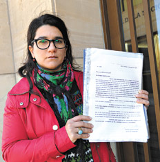 En la audiencia tenía uno de los originales de la carta que su padre reprodujo a mano, y máquina y papel carbónico. “Mi papá cuenta su amarga experiencia en calidad de secuestrado en la ESMA, hace referencia a las condiciones inhumanas que tuvo que vivir, los grilletes, la capucha. También incluye un largo listado de nombres y alias de los represores encargados de las torturas y de los asesinados.”