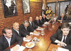 “El proyecto iniciado hace diez años por Néstor Kirchner y continuado hoy por Cristina hizo a las provincias crecer y a nuestros municipios progresar, protegiendo a los sectores más vulnerables”, destacó Scioli con Caló, Espinoza y Gioja a su lado mientras en el salón contiguo seguían dando forma al documento. “Hay que cuidar lo que tenemos que cuidar, corregir lo que haya que corregir y poner mucha fuerza en lo que todavía falta por hacer”, sostuvo y adelantó que el Consejo del PJ comenzará a reunirse con mayor sistematicidad.