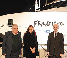 Ayer, en Buquebús, los presidentes recorrieron juntos el catamarán y, sin mencionar a Botnia, remarcaron la decisión política de mantener la unidad regional. “Estamos en el mismo barco y jamás debemos cometer el error de que nuestras inevitables contradicciones nos separen en las cuestiones esenciales”, dijo Mujica en la conferencia de prensa que compartió con la Presidenta. También prometió “venir cuantas veces tenga que venir a Buenos Aires para intentar lazos de concordancia con el pueblo argentino”.