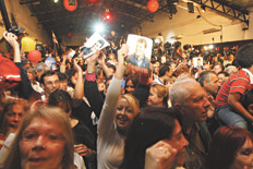“Con Sergio vamos a volver a estar bien, como cuando Carlitos era presidente”, aseguró Pedro, un trabajador de la municipalidad de Tigre, mientras agitaba un banderín negro con las siglas del diputado electo Sergio Massa en amarillo y vociferaba el nombre del suegro de Massa, Fernando Galmarini, ex secretario de Deportes de la gestión de Carlos Menem en los ’90. El resultado de las elecciones ya era conocido, aunque faltaban los datos oficiales, pero en el Complejo Pipa de Tigre los seguidores massistas ya empezaban a festejar por adelantado. “Vamos a cruzar la frontera para recorrer la Argentina”, destacó Massa en su discurso, en el que anticipó sus planes inmediatos y desató una catarata de aplausos.