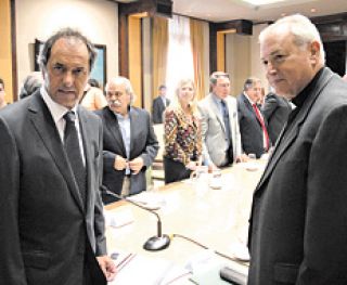 El gobernador bonaerense, Daniel Scioli, se reunió ayer con un grupo de obispos católicos de la provincia de Buenos Aires, con quienes hizo, en general, un repaso de la situación social del territorio bonaerense y, en particular, dialogó sobre el reciente documento de la Conferencia Episcopal a través del cual la jerarquía de la Iglesia alertó sobre la situación de la drogadicción y el narcotráfico en el país.