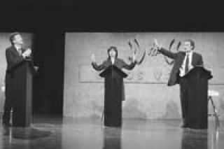 Hasta la seis y media de la tarde de ayer, la pregunta del millón era si Mauricio Macri se presentaría debatir con Aníbal Ibarra, Patricia Bullrich y Luis Zamora en el programa “A dos voces”. El empresario finalmente lo hizo y ni bien se apagaron las cámaras de televisión el gran interrogante pasó a ser para qué accedió a una discusión mano a mano a la que hasta ahora había rehuido. En una posición deliberada que expresó claramente en su primera intervención –”no voy a contestar ningún agravio ni ninguna calumnia”, dijo en referencia a las críticas–, Macri quedó al arbitrio de los golpes que sucesivamente le arrojaron los otros tres candidatos a jefe de gobierno porteño, quienes no perdieron la oportunidad de recordar sus vínculos con el menemismo, así como los negocios de las empresas de su familia en la última década y aún durante la dictadura militar. Ibarra recibió las mayores críticas de Zamora, y Bullrich ganó espacio frente a Macri.