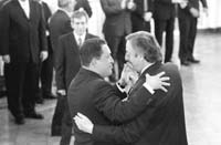 Pero el dato político estuvo en el acto en sí y en las muchas muestras de amistad que los dos presidentes se dieron para las fotos. “El fenómeno de la globalización parece querer condenar a nuestros pueblos al olvido y la marginación. Las ironías de este tiempo cívico nos muestran que mientras se nos demandan mercados libres para la competencia internacional, el mundo central se cierra a nuestras ofertas en protección a sus productores”, expresó Kirchner.
