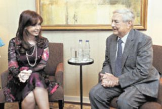 “La presidenta Kirchner y el señor Soros discutieron una serie de temas, incluyendo las perspectivas de la economía de Argentina, recientes acontecimientos positivos en la energía y el sector de los hidrocarburos y la reforma política de drogas de Argentina en América latina”, fue lo que comunicó Michael Vachon, portavoz del empresario. La reunión con Soros se realizó entre rumores de que podría haber un anuncio vinculado con los fondos buitre. Sin embargo, ni el gobierno argentino ni el financista comentaron ese punto. Soros, de todas formas, ya había informado que lleva adelante una demanda contra el Bank of New York Mellon (BoNY) ante los tribunales ingleses para que la entidad financiera desbloquee los pagos realizados por Argentina. Esas acciones judiciales suman presión para que el agente fiduciario deposite en las cuentas de los bonistas del canje los 226 millones de euros correspondientes al último vencimiento de intereses de los títulos emitidos bajo la ley de Inglaterra que están bloqueados a raíz del fallo del juez norteamericano Thomas Griesa.