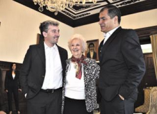 La presidenta de Abuelas de la Plaza de Mayo, Estela de Carlo-tto, y su nieto, Ignacio Guido Montoya Carlotto se reunieron ayer con el presidente de Ecuador, Rafael Correa. “Seguimos adelante porque hay mucho amor y el amor vence”, dijo Carlotto en el Palacio de Carondelet, sede de la presidencia. “Es como que me han regado y he florecido. Se me nota en la sonrisa permanente que tengo, en la alegría de seguir viviendo y luchando”, aseguró en relación con la recuperación de su nieto nacido en cautiverio durante la última dictadura.