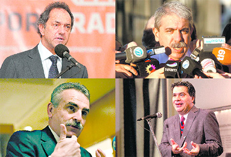 Daniel Scioli, Aníbal Fernández, Agustín Rossi y Jorge Capitanich, cuatro de los dirigentes del FpV que hablaron tras la marcha del silencio.Un día después de la marcha del silencio, el gobierno nacional insistió en la responsabilidad del Poder Judicial en el esclarecimiento de las circunstancias de la muerte de Alberto Nisman hace un mes, y la ejecución y encubrimiento del atentado contra la sede de la AMIA en 1994. En diálogo con Página/12, desde la Casa Rosada insistieron en vincular al mismo grupo de jueces y fiscales que convocó a la manifestación opositora del miércoles con el avance en las causas que involucran a funcionarios nacionales y a la presidenta Cristina Fernández de Kirchner, y volvieron a advertir sobre la intención desestabilizadora de ciertos sectores económicos, mediáticos y políticos. También se manifestaron en el mismo sentido figuras de peso del oficialismo, como el gobernador de Buenos Aires y precandidato presidencial, Daniel Scioli; el ministro de Defensa, Agustín Rossi; y el jefe de la bancada de senadores del Frente para la Victoria, Miguel Pichetto.