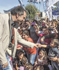 El gobernador bonaerense y precandidato presidencial por el Frente para la Victoria, Daniel Scioli, inauguró un Centro de Atención Primaria de la Salud (CAPS) en el partido de Moreno, donde propuso que los próximos comicios sean “la victoria de los más humildes, de la clase media, de los trabajadores, de los industriales, de los jóvenes, de las mujeres”. Allí, compartió el acto con el intendente local Mariano West y se comprometió a inaugurar en 90 días una UPA que permitirá “resolver el 98 por ciento de las consultas sin tener que llegar al hospital de alta complejidad. En ese marco volvió a atacar a los que se juntan “en contra de” en lugar de proponer un “futuro a favor, de más centros de atención primaria, más espacios de deporte, más fábricas, más empleo genuino y más industria nacional”. Ayer también volvió a hablar su mujer, la empresaria Karina Rabolini, que cumple un rol importante en su campaña. Desde Córdoba, dijo que en los comicios presidenciales de este año “hay dos modelos muy nítidos” en pugna: el que encarna su marido, al que definió como “previsible”, y el del jefe de Gobierno porteño y precandidato del PRO, Mauricio Macri, que propone “un cambio absoluto”. En la inauguración de un local partidario, la primera dama bonaerense prometió acompañar a Scioli “en su sueño de ser presidente” y agregó: “Estoy convencida de que será un gran presidente, porque es el hombre indicado para conducir la próxima etapa del país”. Acompañada por el precandidato a gobernador por el Frente para la Victoria Eduardo Acastello, Rabolini dijo que “está claro que hay dos modelos muy nítidos” y que “Scioli es previsible y confiable” y “garantizará todos los logros de este gobierno”; mientras que “el otro modelo que propone Macri, que es un cambio absoluto” no tendrá éxito. “Yo no veo que la gente quiera tirarse al vacío y cambiar todo”, concluyó.
