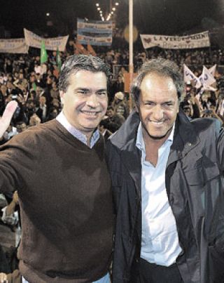 El gobernador bonaerense y precandidato presidencial Daniel Scioli recordó ayer el refrán criollo que dice que no hay que cambiar el caballo a mitad del río. “No cambiemos el proyecto a la mitad del río cuando tenemos por delante un gran futuro”, sostuvo Scioli en un acto que compartió con el gobernador de Chaco, Jorge Capitanich. Ambos gobernadores encabezaron la inauguración del empalme de la ruta provincial 9 con la Nacional 16 en la localidad de Colonia Elisa. Scioli destacó “la capacidad de trabajo, su gestión transformadora y haber puesto de pie a la provincia” a Capitanich. Y se comprometió “a trabajar en el segundo capítulo de la reparación histórica de Chaco” para contribuir al desarrollo. Capitanich, por su parte, expresó: “Querido Daniel, estamos muy contentos de brindarte este marco para que puedas expresar tus ideas, para contar tus propuestas, para seguir gobernando. Porque la Argentina necesita de la continuidad de este proyecto político. Los próximos cuatro años serán la responsabilidad de Dani”, anunció. Por la mañana, Scioli entregó patrulleros en Esteban Echeverría junto al intendente Fernando Gray.