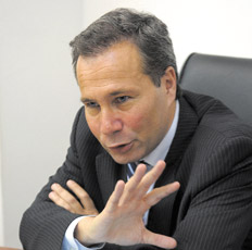 - Dice TWSJ: El gobierno de Fernández de Kirchner ha trabajado para socavar la imagen de Nisman publicando anuncios en medios de Argentina y el extranjero en los que lo acusaba de tratar de desestabilizar al país. En marzo aparecieron unas fotos en Cancún con una amiga y retozando en una fiesta con otras mujeres jóvenes ligeras de ropas y blandiendo juguetes sexuales.