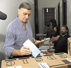 Ayer el mascarón de proa de la boleta del Frente Progresista (FP), Hermes Binner, reapareció ante la prensa luego de que se lo esperara en vano el domingo a la noche en el bar El Cairo, donde la tarima quedó vacía apenas se conoció la tendencia de los comicios, en los que se impuso el candidato kirchnerista Omar Perotti, seguido de Carlos Reutemann por Cambiemos. “La boleta sábana nos jugó en contra”, aseguró, pero enseguida dijo confiar en que podrá mejorar en las generales de octubre.
