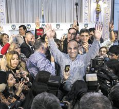El candidato del FpV reunía el 64,8 por ciento de los votos y casi a las 2 de la madrugada, acompañado por Daniel Scioli, anunció que la tendencia era “irreversible”. El radical José Cano, quien recibió el apoyo de Macri, sumaba el 31,3. Hubo incidentes en algunas localidades.