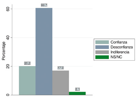 Merecen mayor confianza la Iglesia (¿efecto Francisco?) y las personas en general que, por ejemplo, el Ejército y la policía. Tienen prestigio los organismos de derechos humanos, lo mismo que el sistema interamericano de derechos humanos, lo cual parece consistente con el 51,4 por ciento de acuerdo con que un argentino acusado de un crimen de lesa humanidad como la tortura sea juzgado por un tribunal internacionale incluso ocurre lo mismo con un funcionario o político argentino.