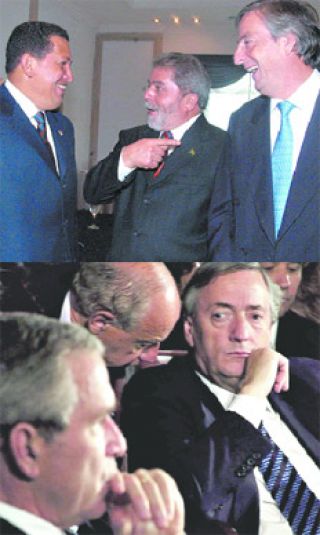 Quienes se encargaron de frenar ese proyecto imperial, fueron un puñado de presidentes de los países del Mercosur –Néstor Kirchner, Lula da Silva, Tabaré Vázquez y Nicanor Duarte Frutos–, la mayoría de ellos críticos respecto al derrotero neoliberal y arribados al poder con llamativa sincronía, que decidieron acoplarse a la temprana resistencia del líder bolivariano Hugo Chávez, quien había mostrado ya un solitario desacuerdo al ALCA en la Cumbre de Quebec en 2001.