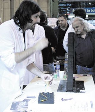 De guardapolvo blanco, volante en mano, parado en medio del hall de la estación Constitución, Juan Chiesa, biólogo, 45 años, doctorado en España, mostraba un cartel que llevaba colgado del pecho con la leyenda “Trabajador científico repatriado. Programa Raíces”. Era uno de los tantos científicos del Conicet, del INTA, del Invap y de universidades públicas que se mezclaron ayer entre miles de personas que en la hora pico de la tarde, cuando volvían de sus trabajos, se encontraron con un despliegue militante que los abordaba y trataba de explicarles los avances tecnológicos y científicos de los últimos años. Con stands y juegos interactivos, investigadores de todas las disciplinas salieron a ganar votos cara a cara para que el candidato del FpV, Daniel Scioli, se imponga sobre Mauricio Macri en el ballottage del 22 de noviembre. Las razones, múltiples y particulares según la experiencia de cada profesional, las resumió a Página/12 Esteban Mockskos, responsable técnico de la supercomputadora Tupac: “Tenemos que cuidar lo conseguido, porque es un camino de décadas que se puede destruir en apenas un año”.