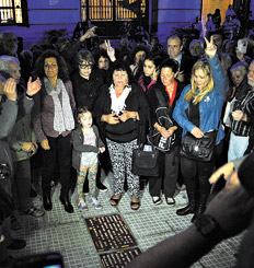 El escenario elegido no podía ser otro. A escasos metros de un buzón y de espaldas al ex Correo Central, los dieciocho detenidos desaparecidos de Encotel fueron recordados ayer en un acto que cerró la ministra de Cultura de la Nación, Teresa Parodi. Con palabras alusivas y una canción que hizo lagrimear a familiares y amigos de los trabajadores, la cantautora participó del homenaje que finalizó con la colocación de tres baldosas que recuerdan a las víctimas del terrorismo de Estado. En su memoria, quedaron grabados sobre la vereda, justo en la esquina de Leandro Alem y Sarmiento, todos los nombres. Desde Isaac Alvaro Mosquera, el único asesinado en democracia (el 2 de noviembre de 1973) hasta el último, Próspero Mario Gómez, desaparecido en 1978.