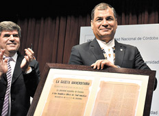 El presidente de Ecuador, Rafael Correa, fue distinguido ayer con el título Honoris Causa por la Universidad Nacional de Córdoba. En su discurso, Correa habló de la importancia de la preservación ambiental.