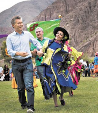La ceremonia se desarrolló en un escenario similar al que Cambiemos eligió para cerrar la campaña de la segunda vuelta. Como en el cierre en Humahuaca, los anuncios de ayer del Presidente combinaron banderas originarias, montañas de fondo y folklore popular con la exposición proselitista de su mujer y su hija, que posaron bailando el Carnaval para las fotos. “La ceremonia de desentierro del diablo con que comienza la celebración del Carnaval tiene raíces religiosas, que se mezclan con el misticismo de pueblos ancestrales y que consiste en ofrendas a la Pachamama, entre otros ritos festivos”, describieron desde el sitio oficial de Casa Rosada.