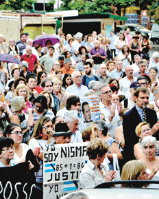 Al igual que hace 12 meses, el único orador fue el secretario general del gremio de Judiciales, Julio Piumato, que insistió con la hipótesis del crimen de Estado: “No tenemos vergüenza de pedir justicia porque ya pasaron trece meses, exigimos castigo para los responsables de este magnicidio”, dijo. Lo escuchaban, en primera fila, los fiscales convocantes: Raúl Plee, Ricardo Sáenz, Carlos Rívolo, José María Campagnoli, Guillermo Marijuán y Carlos Stornelli, entre otros. También estuvieron presentes la jueza federal Sandra Arroyo Salgado, ex esposa de Nisman y querellante en la causa que investiga la muerte del fiscal, la madre, la hermana y las hijas de Nisman.