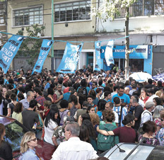 El sábado 5 marzo unos 400 militantes principalmente de Nuevo Encuentro y también de La Cámpora se disponían a inaugurar un nuevo local cuando recibieron al menos tres descargas de plomo. Una de las balas perforó el brazo de una militante de La Cámpora, que llevaba en brazos a su hermana de cuatro años. Otra de las balas rozó el hombro de otra militante. El principal referente de NE, Martín Sabbatella, calificó en su momento el episodio como “un acto de violencia política sin antecedentes desde la vuelta de la democracia”. Ante la falta de respuestas por parte de la justicia porteña, anoche cientos de militantes de todas las agrupaciones kirchneristas volvieron a concentrarse frente al lugar de los hechos para exigir que el atentado no quede impune.