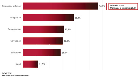 En lo que siempre es un dato clave, la consultora que encabeza Bacman señala que, por primera vez, los encuestados están pesimistas respecto de lo que pasará en su hogar: 65 por ciento dice que en seis meses va a estar peor, económicamente hablando, en el ámbito de su familia. Pero, además, no hay optimismo en ninguno de los temas abordados por el CEOP. “Siempre en un contexto donde la percepción de que todo será peor es más alta –analiza Bacman–, la evolución de la situación económica y la inflación son los aspectos que mejores porcentajes de expectativas poseen. En definitiva las expectativas positivas oscilan entre un 42 y un 44 por ciento; en tanto las negativas se ubican en porcentajes más altos que oscilan entre el 51 y el 55 por ciento. Los aspectos que más bajas expectativas despiertan son el aumento de la conflictividad social (66,5 por ciento), inseguridad y narcotráfico (64,7 por ciento) y desocupación (61 por ciento). Los valores en estos tres casos son tan contundentes en sí mismos que con solo expresarlos basta”.