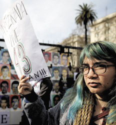 Sobre las vallas de Plaza de Mayo, las organizaciones colgaron carteles con el rostro de cada uno de los 43 seminaristas desaparecidos en Ayotzinapa hace dos años, crimen que permanece impune y que marcó un punto de inflexión en la imagen de un gobierno que se ocupaba especialmente en mostras logros de una supuesta “lucha contra el narcotráfico”. “Cuando decimos que vivimos en un narcoestado, estamos hablando de una permanente guerra sucia contra toda la población civil”, describió Arsinoé Orihuela, de la Asamblea de Mexicanos en Argentina. “Están cancelados todos los canales institucionales para la participación política, y toda protesta contra las reformas de libre mercado es suceptible de ser agredida por el Estado”, agregó. “El narcoestado es la versión mexicana del neoliberalismo”, redondeó.